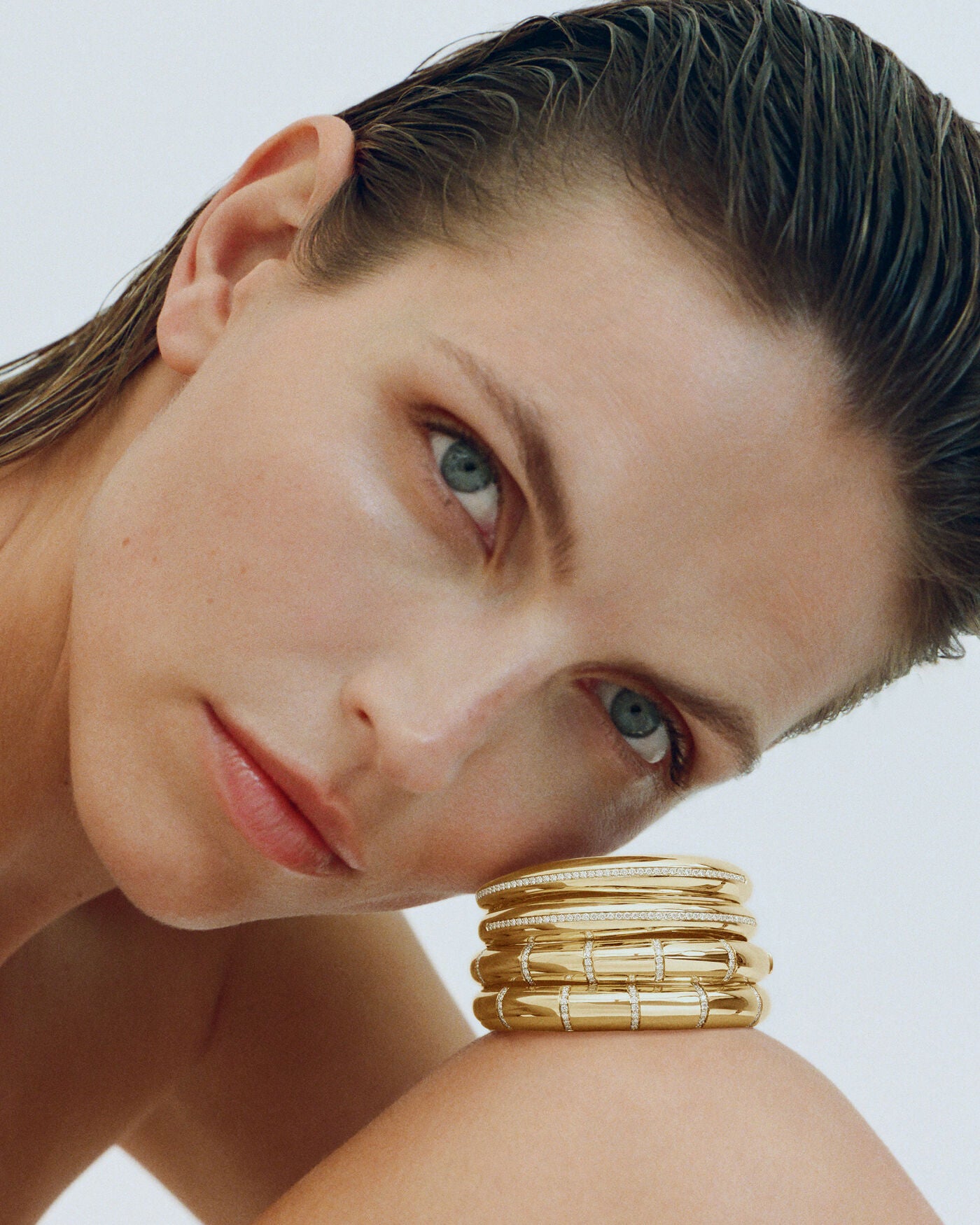 Cada pieza se distingue por su elegante volumen, suavizado por curvas envolventes y realzado por un juego de hileras de diamantes blancos en talla brillante que aportan un brillo único y un extra de movimiento a las joyas.