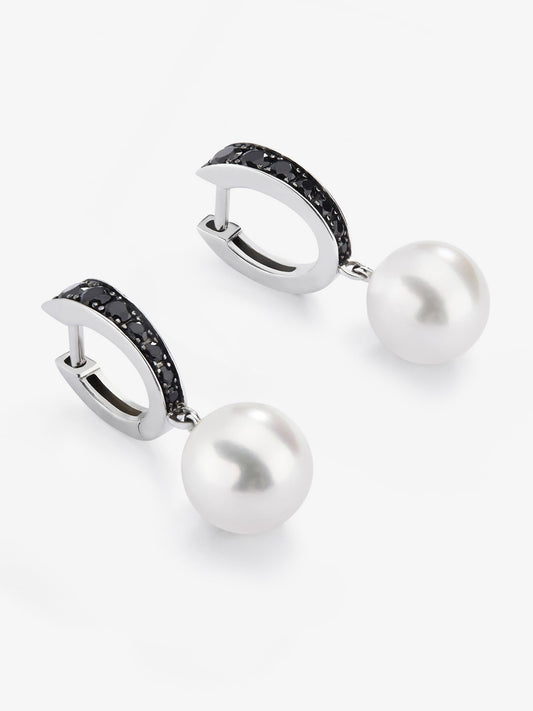 • Pendientes de aro de plata 925 con espinelas negras y perlas akoya de 8,5mm