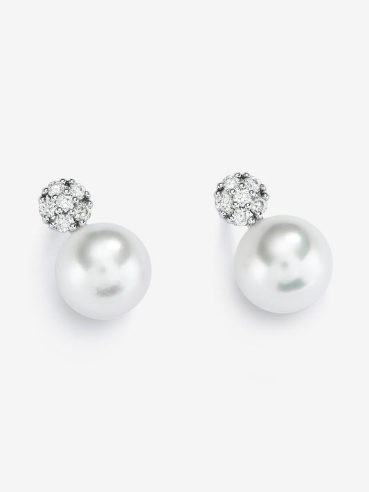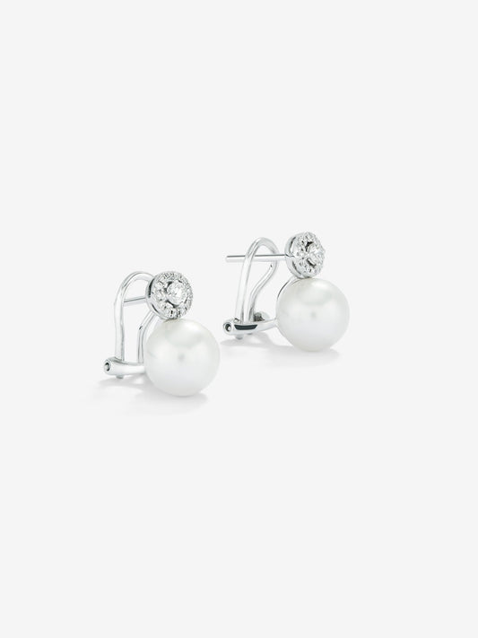 Pendientes de oro blanco de 18K con 12 diamantes en talla brillante con un total de 0,34 cts y 2 perlas australianas de 8,5mm