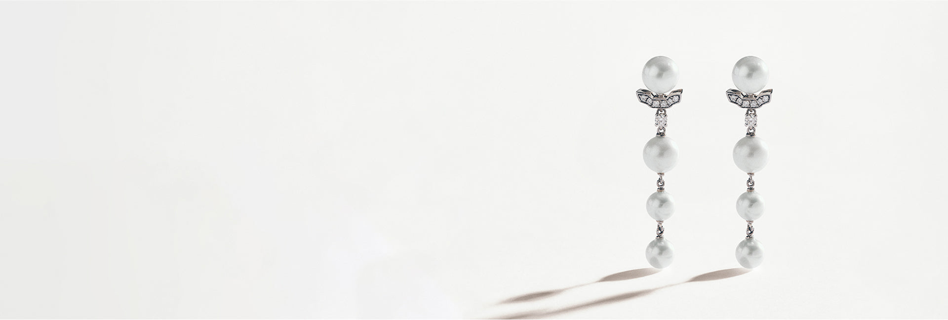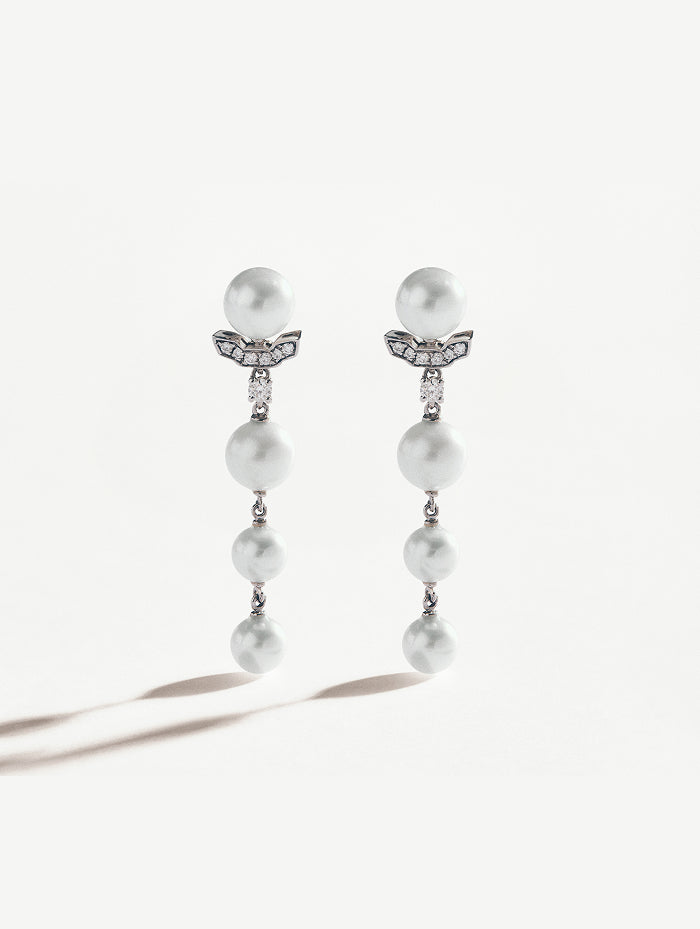 • Pendientes de oro blanco de 18K con 12 diamantes en talla brillante con un total de 0,34 cts y 2 perlas australianas de 8,5mm