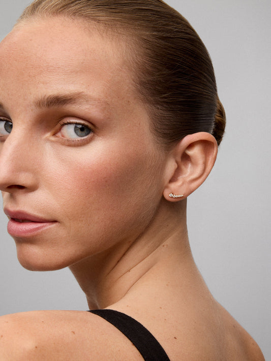 Pendientes trepadores de oro amarillo de 18K con 12 diamantes en talla brillante con un total de 0,34 cts