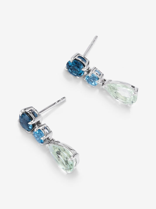 • Pendientes de plata 925 con 2 topacios azul london, 2 topacios azul swiss y 2 amatistas verdes