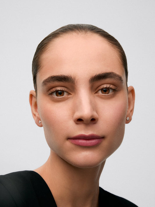 • Pendientes desmontables de oro blanco de 18K con diamantes blancos en talla brillante de 0,2 cts