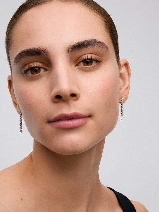 Pendientes aro largo de oro blanco de 18K con diamantes