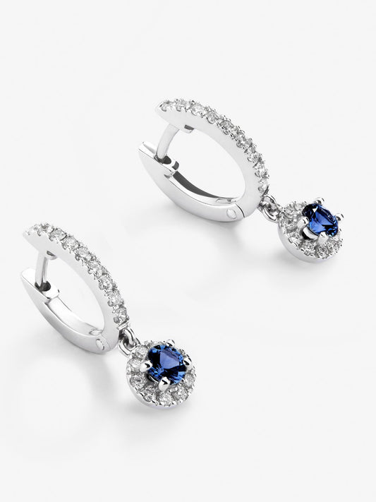 Pendientes de aro de oro blanco de 18K con 38 diamantes en talla brillante con un total de 0,29 cts y 2 zafiros azules en talla brillante con un total de 0,37 cts