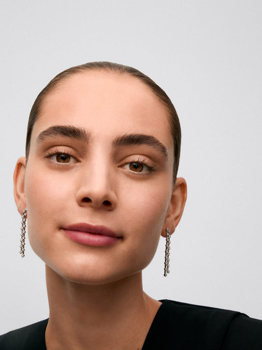 • Pendientes largos de oro blanco de 18K con 34 diamantes en talla brillante con un total de 1,03 cts