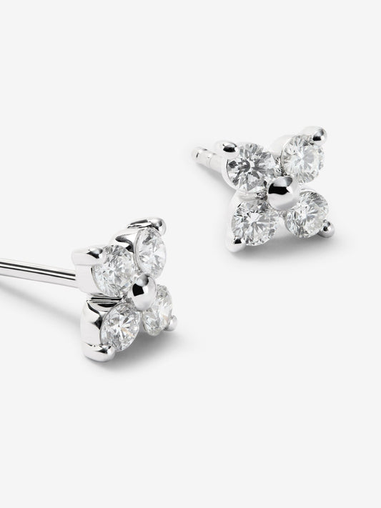 • Pendientes flor de oro blanco de 18K con diamantes en talla brillante con un total de 0,64 cts