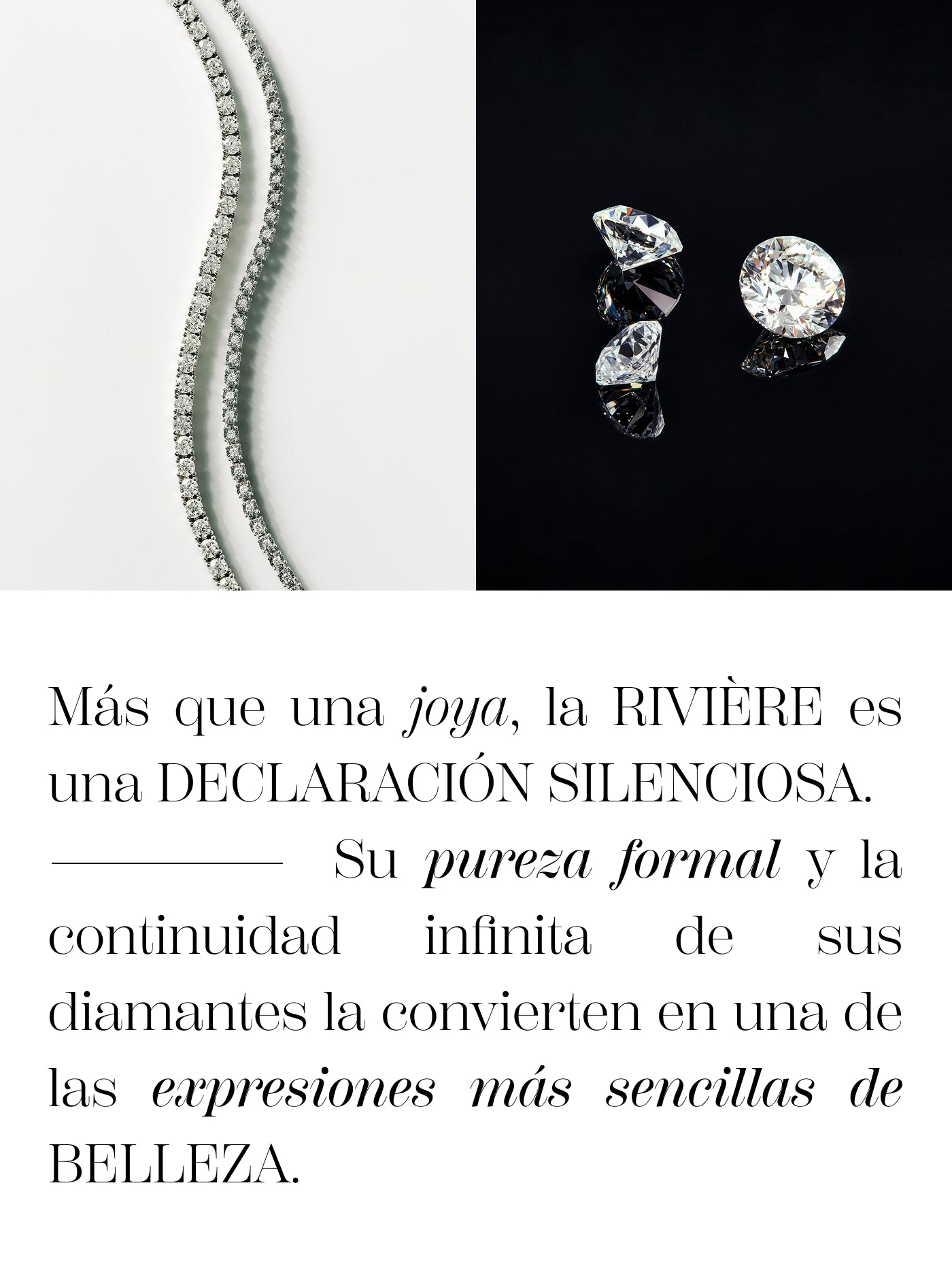 Más que una joya, la rivière es una declaración silenciosa. Su pureza formal y la continuidad infinita de sus diamantes la convierten en una de las expresiones más sencillas de belleza. Un regalo perfecto para celebrar nuevos capítulos de un amor consolidado, un gesto que trasciende lo cotidiano y que se transforma en memoria viva, destinada a permanecer para siempre.
