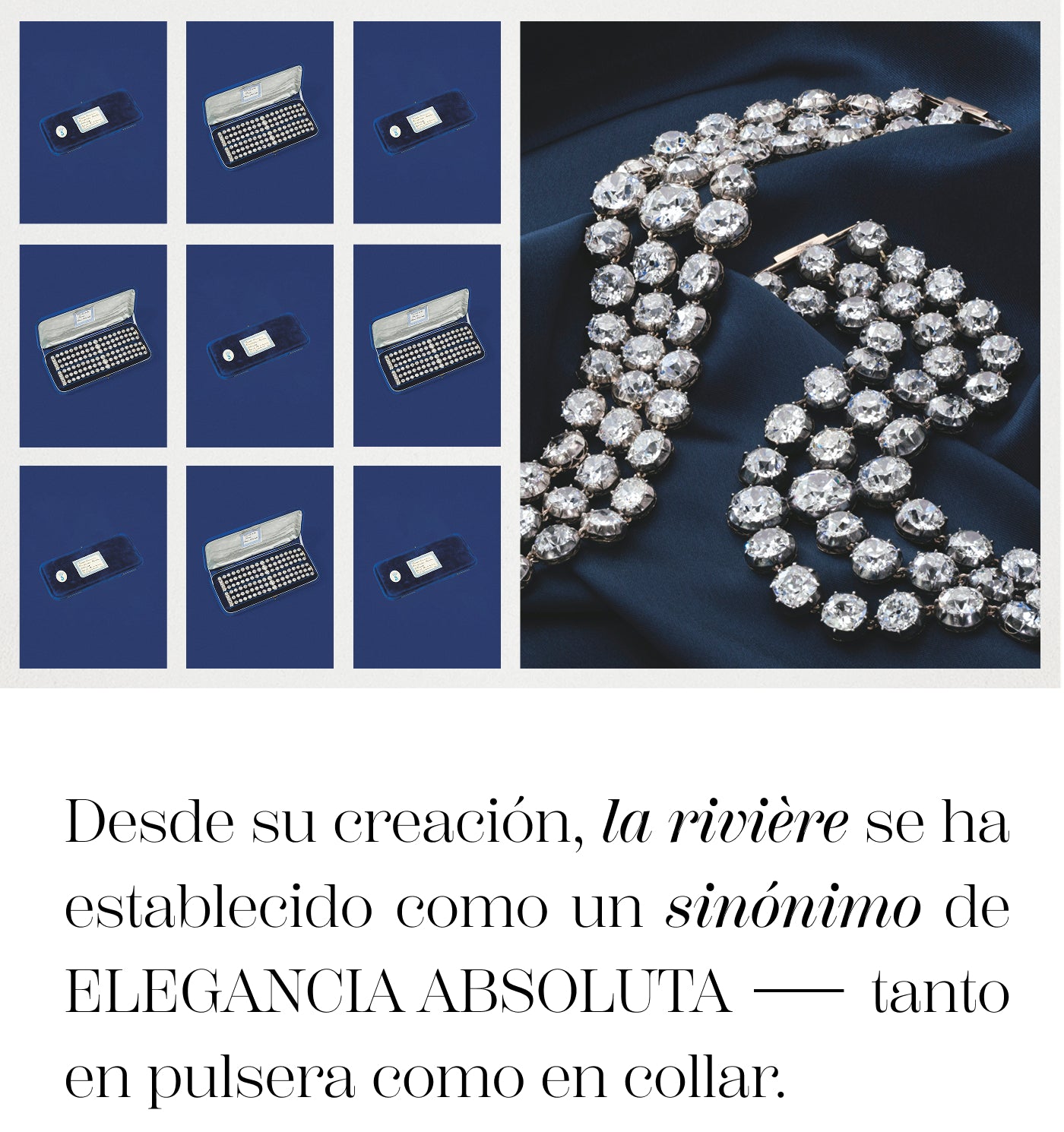 En la joyería internacional, la rivière se reconoce como la joya esencial por antonomasia.