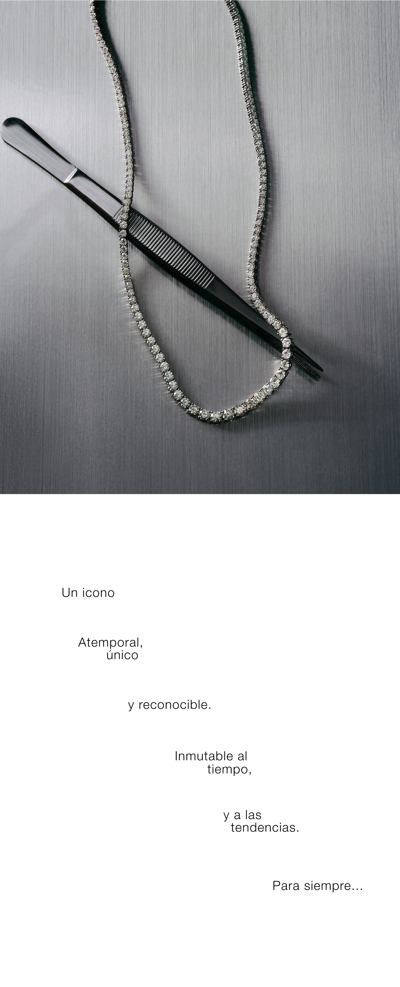 Esta joya encierra un desafío artesanal único: conseguir que lo aparentemente sencillo revele la perfección absoluta. Para que cada diamante brille en todo su esplendor, las monturas deben ser casi invisibles pero exactas en proporción, de manera que todas las piedras dialoguen entre sí con la misma intensidad.