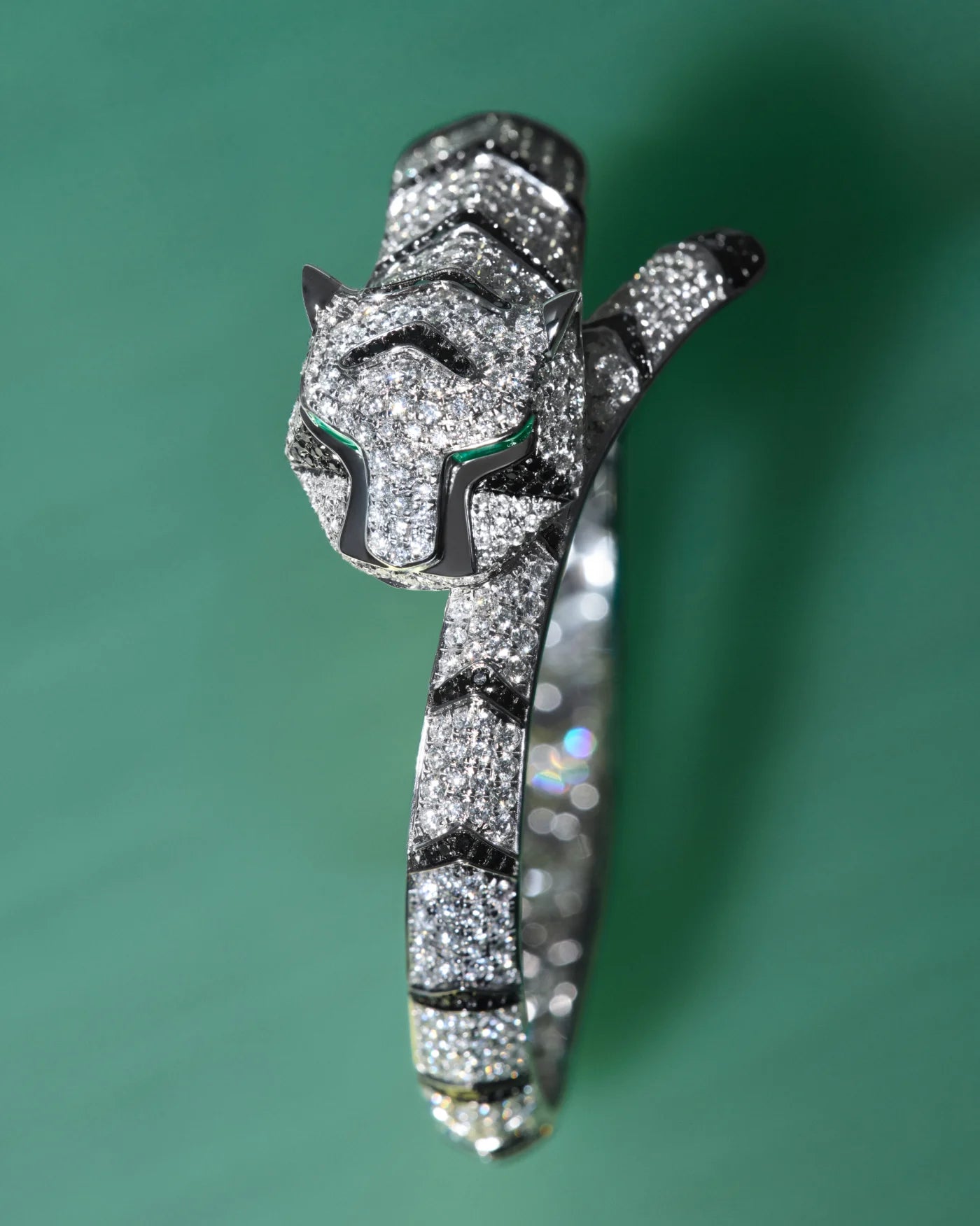 The tiger's tail and head become the two essential elements that build the complex structure of each jewel.