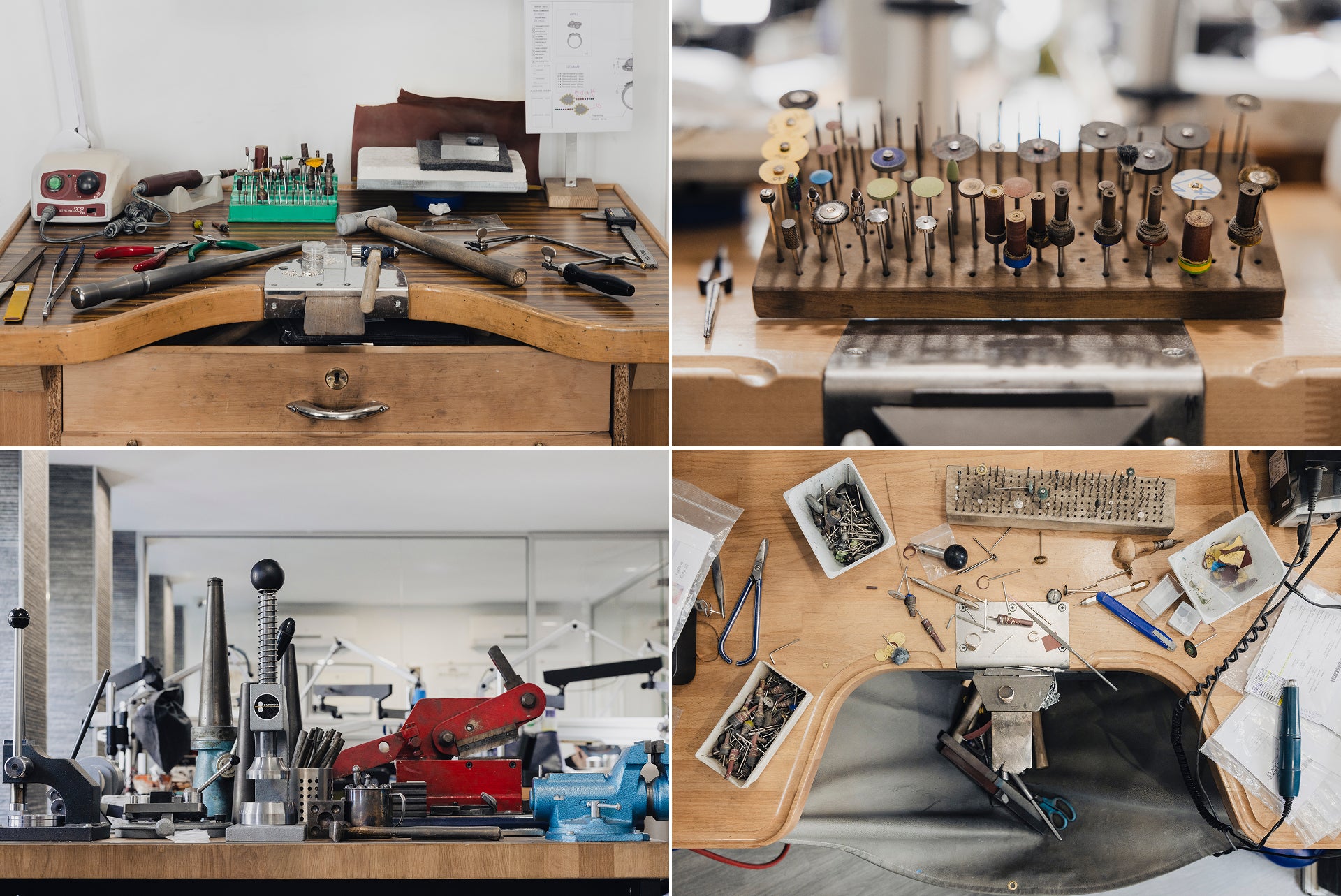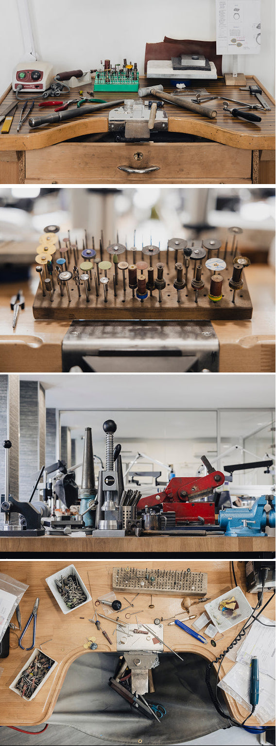 Transformamos el espacio Berenis en un recorrido que invitaba a los visitantes a adentrarse en el corazón mismo del oficio joyero. Cada paso revelaba una parte del proceso creativo que da vida a nuestras piezas, desde la primera idea hasta el brillo final del diamante. Una estructura en zigzag guiaba a los asistentes por el recorrido cubierto con las fotografías de María Morenés, que, con su mirada poética y su sensibilidad hacia la artesanía española, supo capturar la esencia más íntima de nuestros talleres: la luz sobre las manos, el silencio concentrado del trabajo y la belleza que habita en cada gesto.