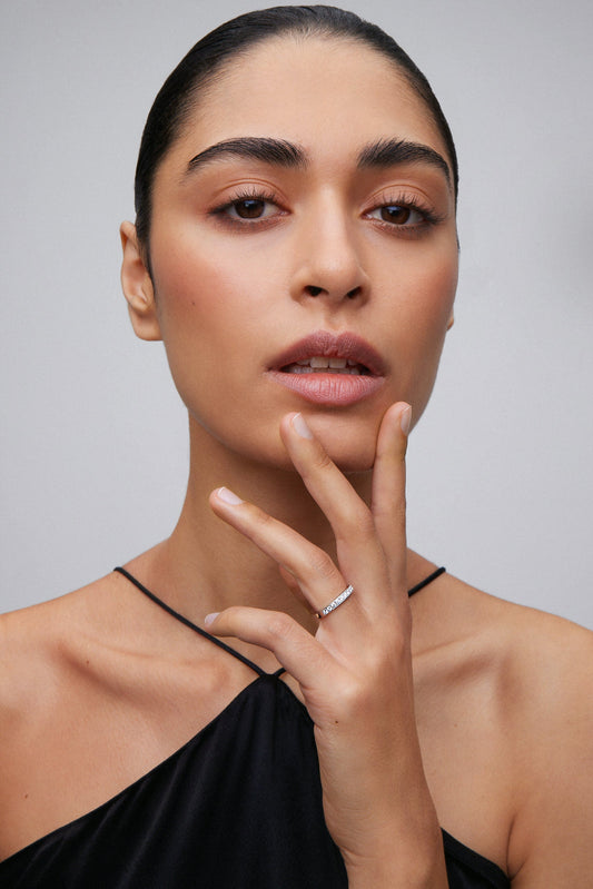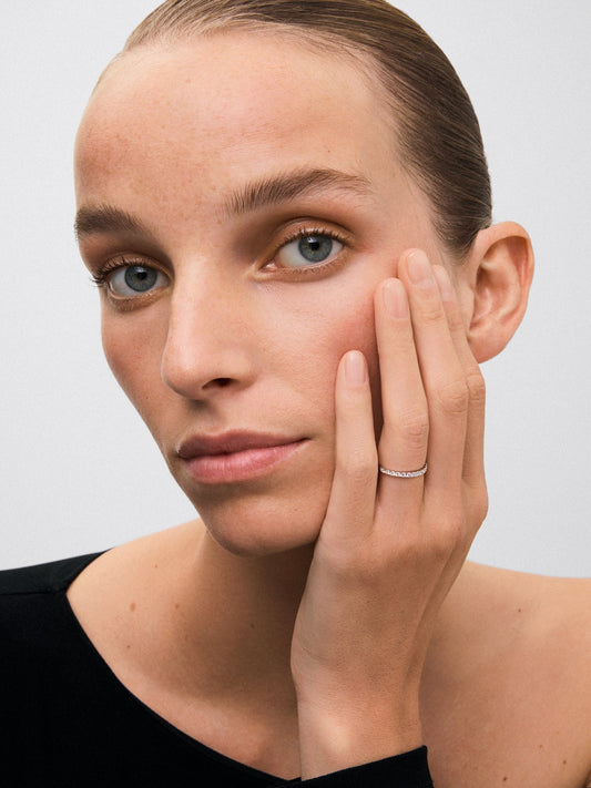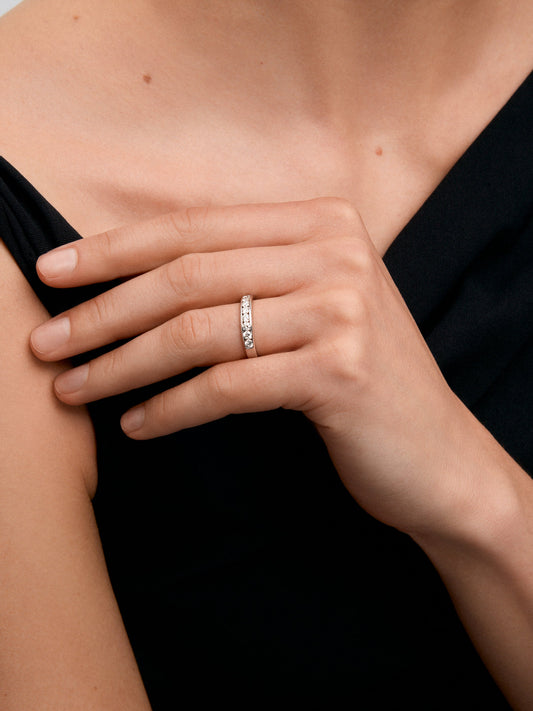 Media alianza de oro blanco de 18K con pavé de diamantes en talla brillante con un total de 0,15 ctsPrecio habitual 690€Precio habitualPrecio unitario porPrecio de oferta 690€ -