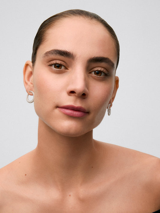 Pendientes de oro blanco de 18K con 2 diamantes centrales, pavé de diamantes y forma de hoja de arcePrecio habitual 7.595€Precio habitualPrecio unitario porPrecio de oferta 7.595€ -