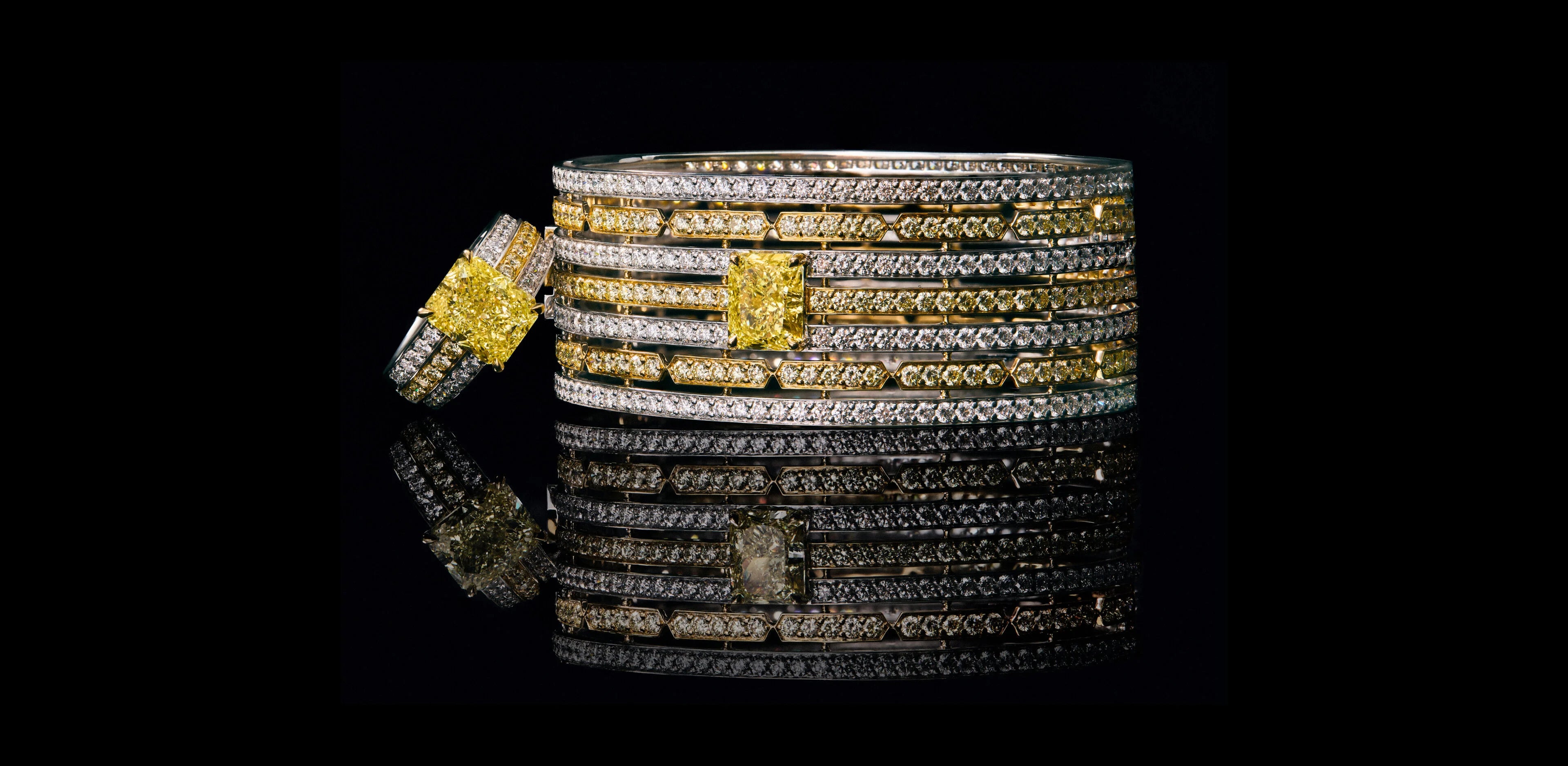 La distinción convertida en joya, la exclusividad hecha colección. Descubra esta serie limitada de seis joyas únicas elaboradas a partir de excepcionales ejemplares de diamantes fancy yellow en talla radiant.