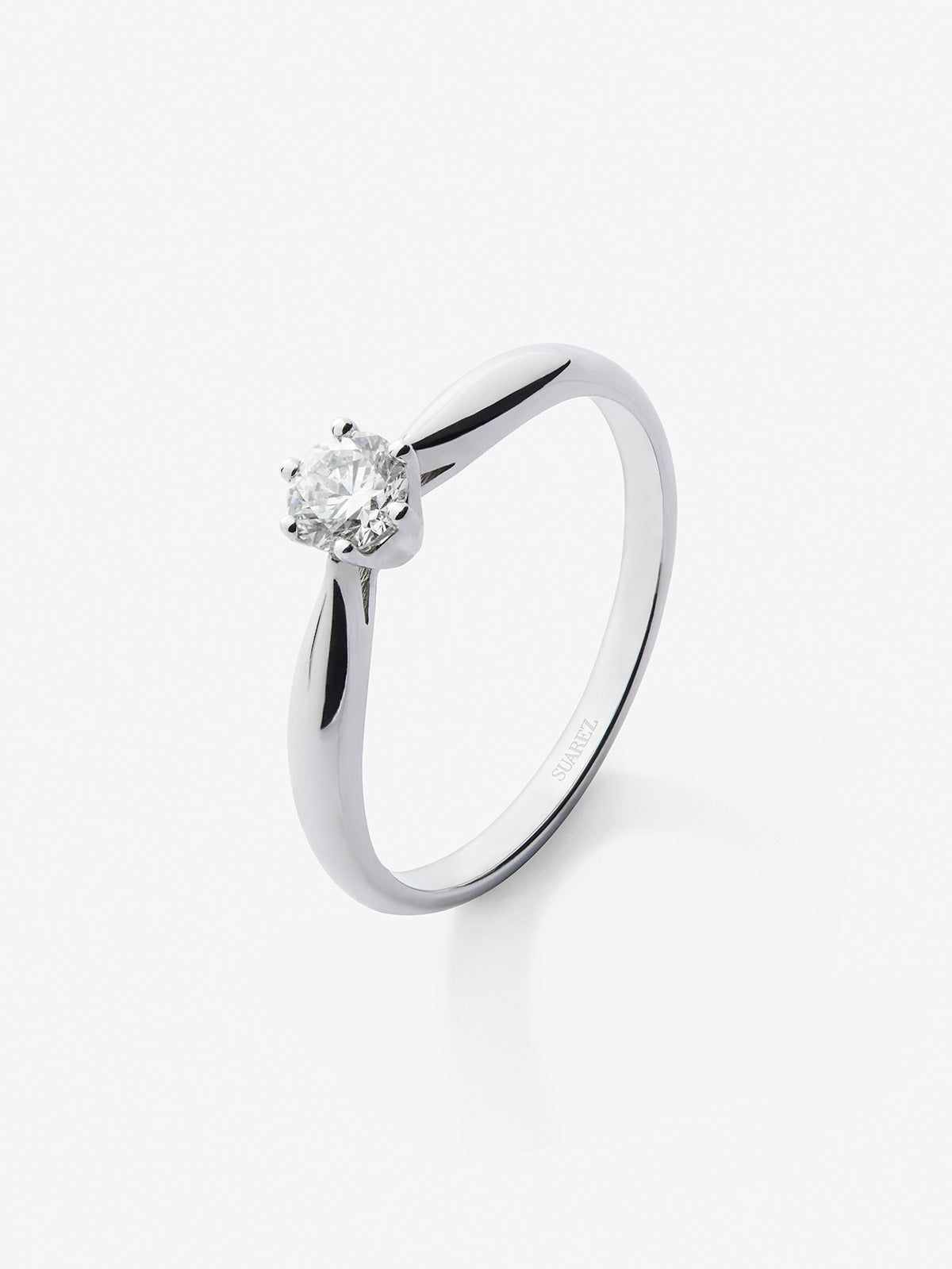 Anillo solitario de compromiso de oro blanco de 18K con diamante central de 0,5 quilates